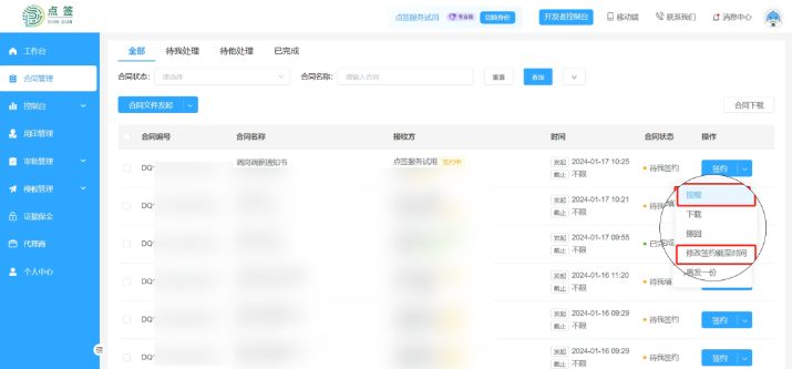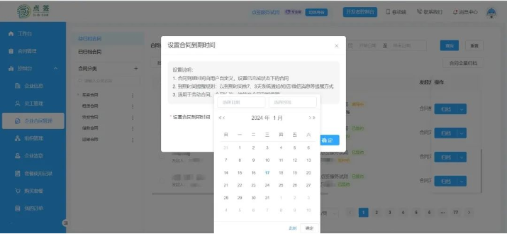 在一些情况下,员工转正时需要重新签订合同。如果同一时间段入职的员工很多,推荐使用点签电子合同的“签约提醒”功能。