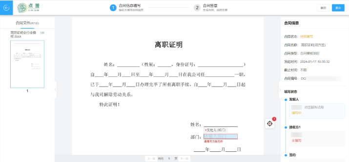 员工离职时,HR可以通过点签平台里的模板,开具《离职证明》或《实习证明》,并且在线上完成公章加盖操作。