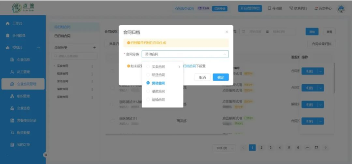 为方便合同管理,点签电子合同专业版上线了“合同归档分类”功能,支持按合同的类别进行归档。