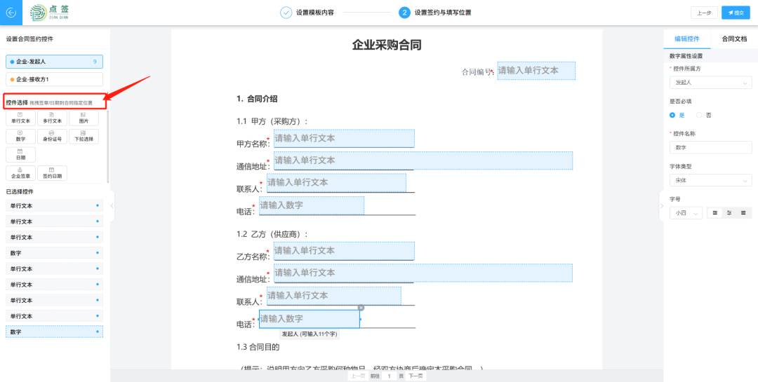 第二步 设置签约及填写位置